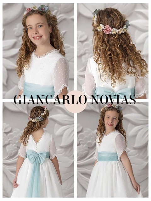 Nueva colección de vestidos de primera comunión en Giancarlo Novias Madrid, pide cita y ven antes de que se agote tu talla o vestido preferido.
