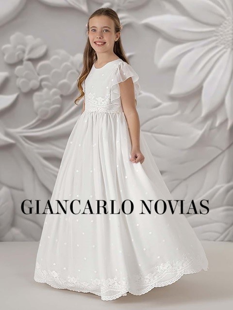 Nueva colección de vestidos de primera comunión en Giancarlo Novias Madrid, pide cita y ven antes de que se agote tu talla o vestido preferido.