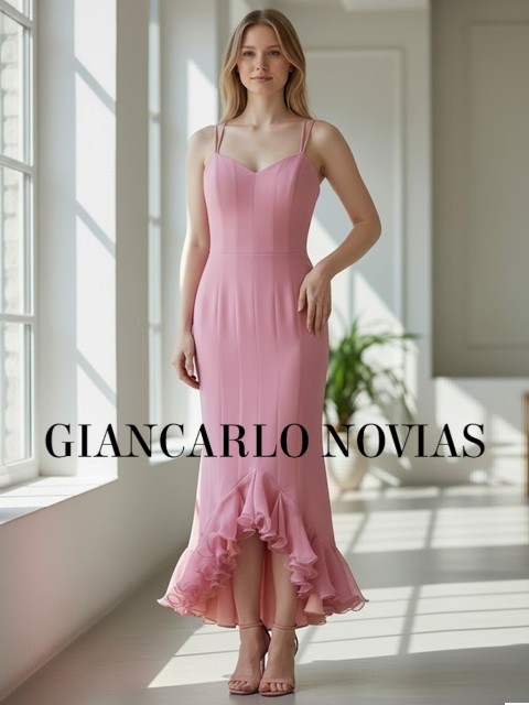 Vestido de fiesta largo midi de corte sirena con cola, de clara inspiracion andaluza, patron realizado con nesgas y godés.