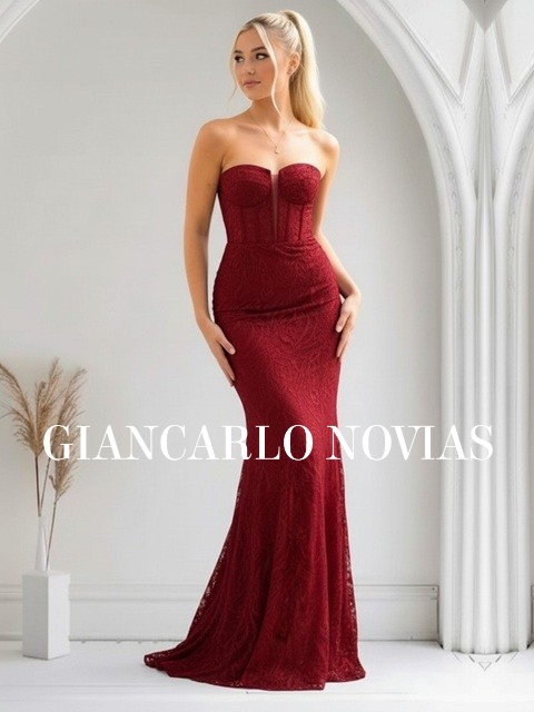 Vestido elegante y juvenil de corte sirena con escote palabra de honor y cuerpo realizado tipo corset