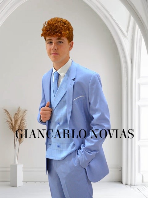 Por otro lado, el traje azul celeste representa frescura, claridad y