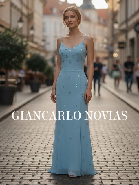 Vestido de fiesta sencillo a la par que elegante salpicado de lentejuelas lagrima